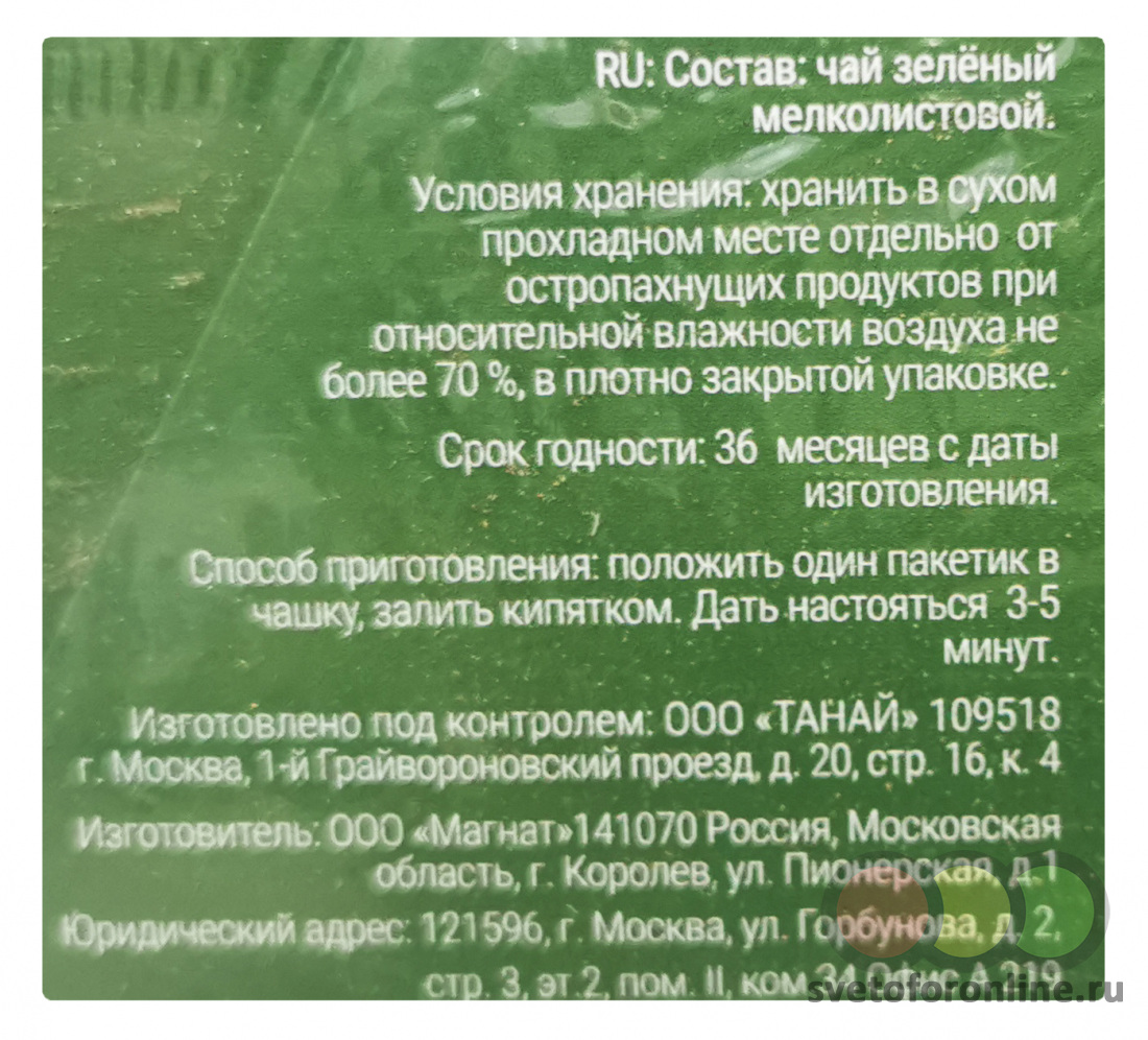 Чай зеленый байховый "Танай Лондон" 100 пак*2г с/я - Купить в магазине "Светофор" город Соликамск, ул Всеобуча, д 120